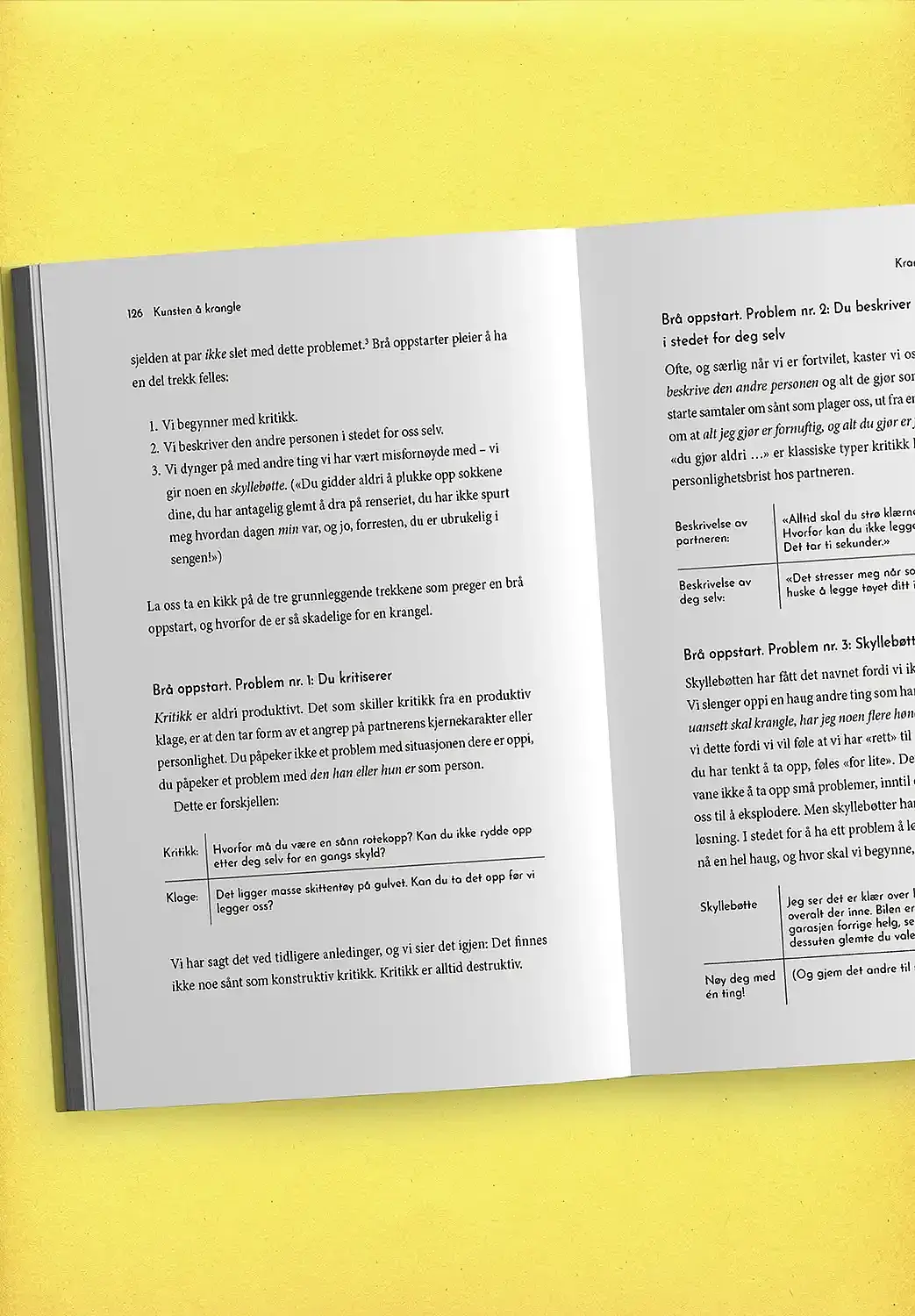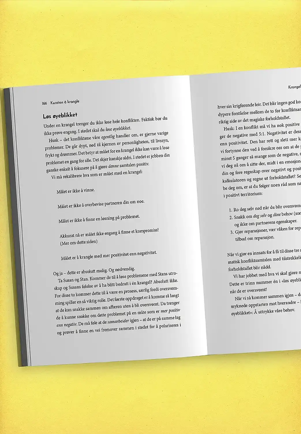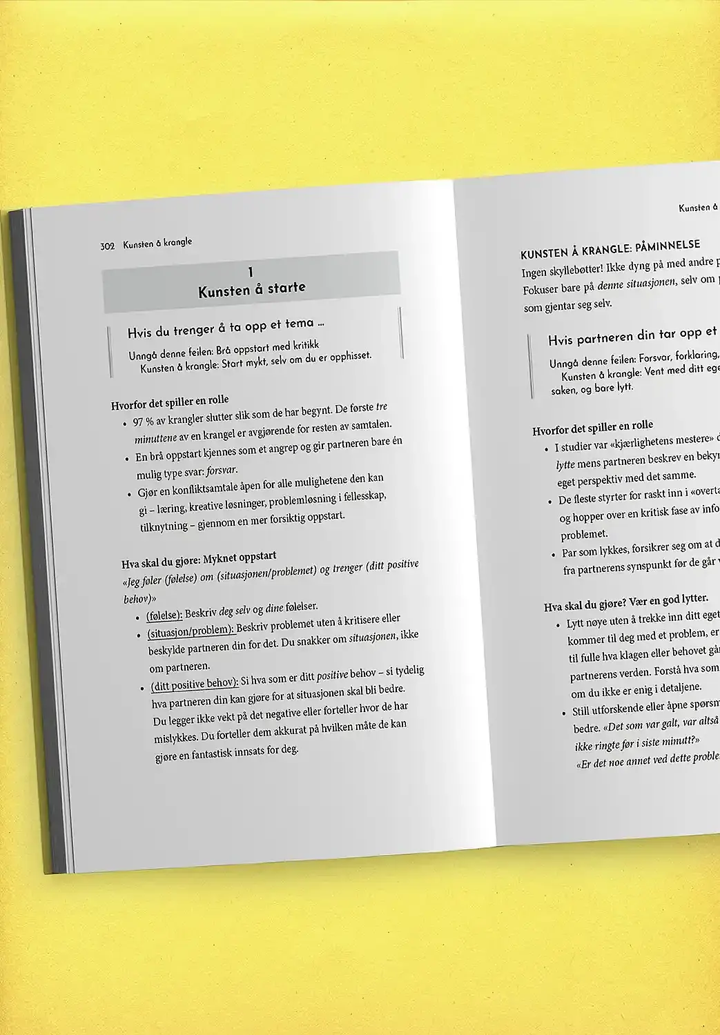Sannheten er at de lykkeligste og mest vellykkede parene krangler – hele tiden. Det er måten par krangler på, som er avgjørende for forholdets fremtid. De fleste snubler inn i konflikten uten å tenke gjennom hva krangelen egentlig handler om, og blir raskt overveldet av fysiologiske reaksjoner de ikke kan kontrollere og følelser de ikke hadde forventet seg.