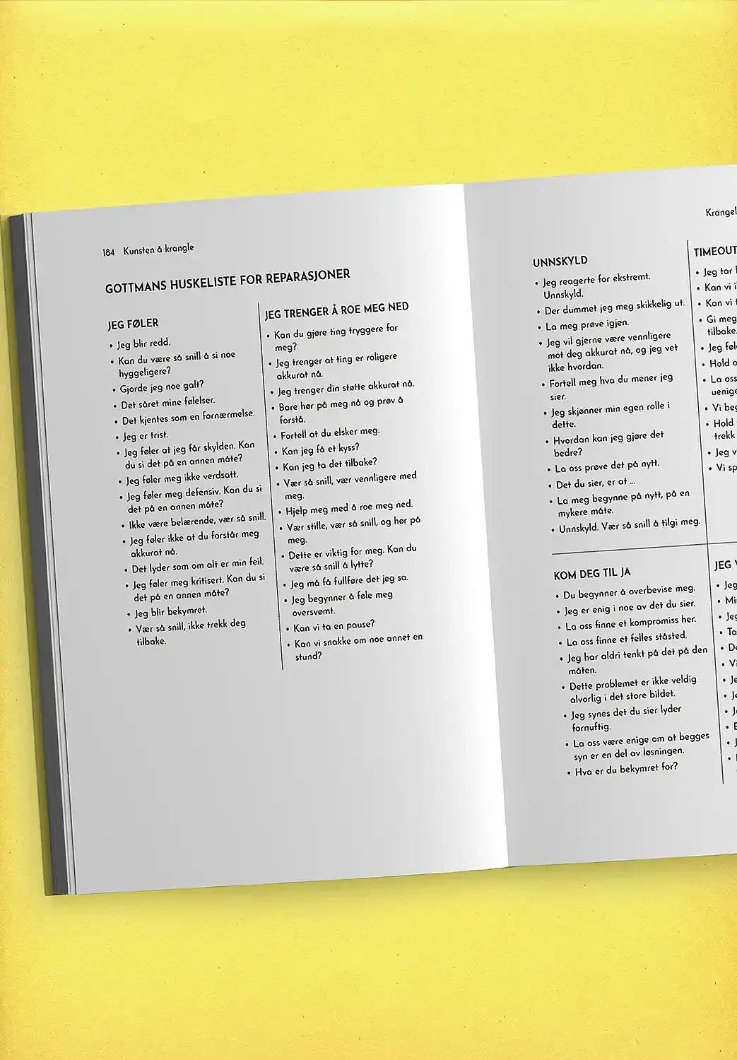 Kunsten å krangle er en grunnleggende ressurs som hjelper par å unngå at alt blir en kamp om siste ord, til fordel for en mer samarbeidsvillig og løsningsorientert innstilling: roe ned, være påkoblet hverandre og virkelig forstå situasjonen, slik at kranglene kan gjøre forholdet sterkt.